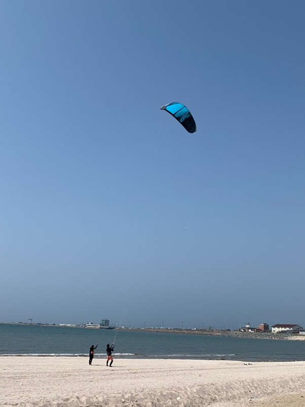 바람이 많이 부는 날이었고 오랜만에 바닷바람을 쐬니 가슴이 탁 트이는 것 같았다. 아이들은 신발을 벗고 바다에 발을 담그기 정신없고 강아지를 데리고 나온 가족들이나 연인들도 많아서 딸아이가 매우 부러워하고 아쉬워하기도 했다. 또한 먼저 커다란 연 같기도 하고 패러글라이딩 같기도 한 뭔가를 날리고 그 후 밑에 서핑보드를 연결하여 날아가는 글라이더를 조정하면서 수상스키를 타는 것 같은 처음 보는 수상 레저스포츠를 하는 동호회도 나와있었다. 보트가 연결되어 있지 않고 보드를 타는 것이므로 패러세일링은 아닌데 신기해서 인터넷으로 검색을 해 보았으나 아무리 검색을 해도 정체를 알 수 없었다.